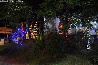 A decoração personalizada e demais enfeites dão o tom do Natal na cidade. Na Praça da Matriz, foi montada a decoração de fim de ano, ainda incompleta, acredito. As árvores e demais plantas decoradas com micro lâmpadas e pingentes abrilhantam o ambiente. Também foram iluminadas algumas outras localidades da cidade, como o Cruzeiro, em frente ao Colégio Estadual Bernardino Guimarães, símbolo do nascimento da cidade.